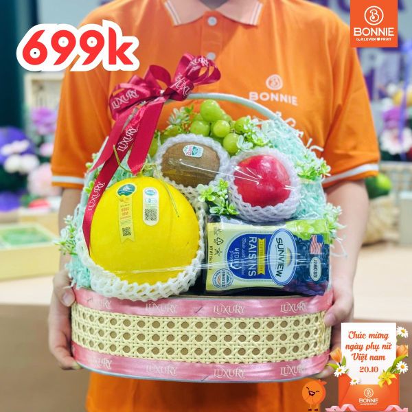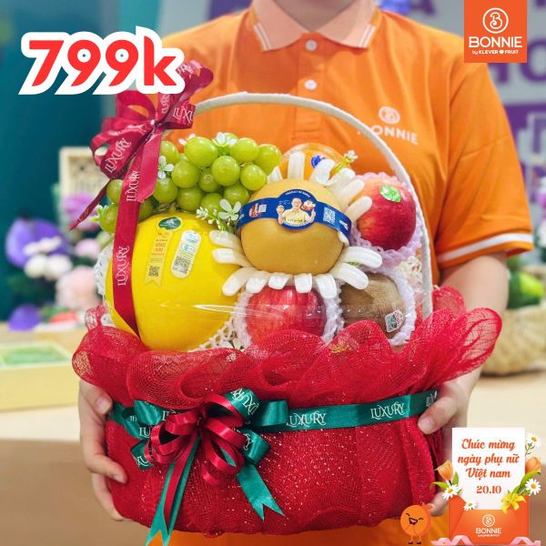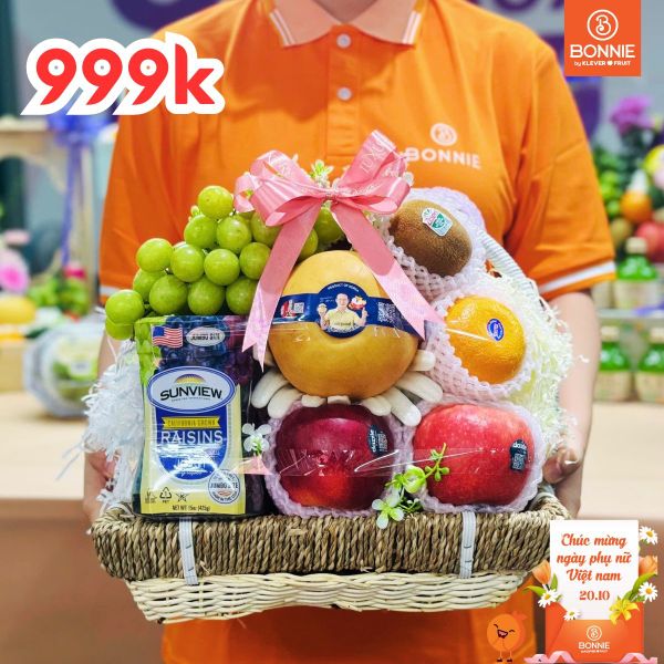 - Phù hợp: Quà biếu sếp nữ hoặc vợ dịp đặc biệt. Với giá 999k, đây là "best-seller" tại Bonnie Fruit, tượng trưng sự thịnh vượng.