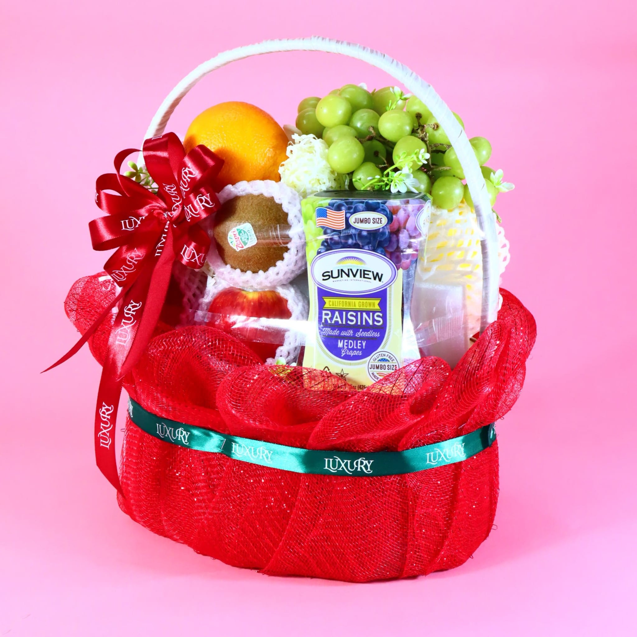Giỏ quà “Trái Cây & Nho Khô Hộp Oval Có Đế” là món quà mang đậm tinh thần 20/10 – thanh lịch, thiết thực và trọn vẹn yêu thương. Sự kết hợp giữa trái cây nhập khẩu chính ngạch và nho khô cao cấp Medley Raisin Mỹ tạo nên món quà dinh dưỡng, sang trọng và phù hợp cho mọi dịp tri ân. Thiết kế giỏ oval có đế chắc chắn, phối màu hài hòa và tinh tế, giúp set quà vừa bắt mắt vừa mang đậm dấu ấn Bonnie Fruit.