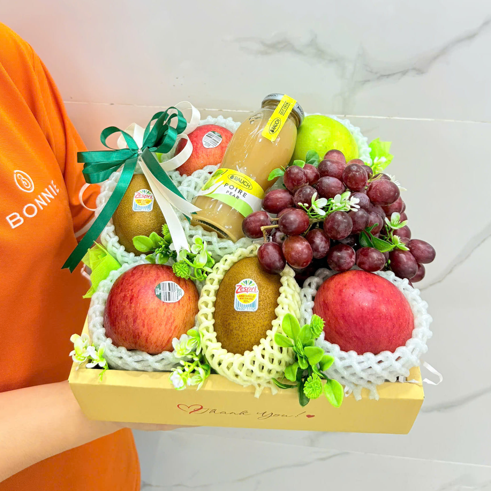 Mỗi thành phần trong giỏ đều là lời chúc về sức khỏe, tươi trẻ và năng lượng tích cực. Sự kết hợp giữa trái cây nhập khẩu và nước ép nguyên chất tạo nên món quà vừa thiết thực, vừa thể hiện phong cách sống hiện đại và tinh tế. Bonnie Fruit mong muốn lan tỏa thông điệp: