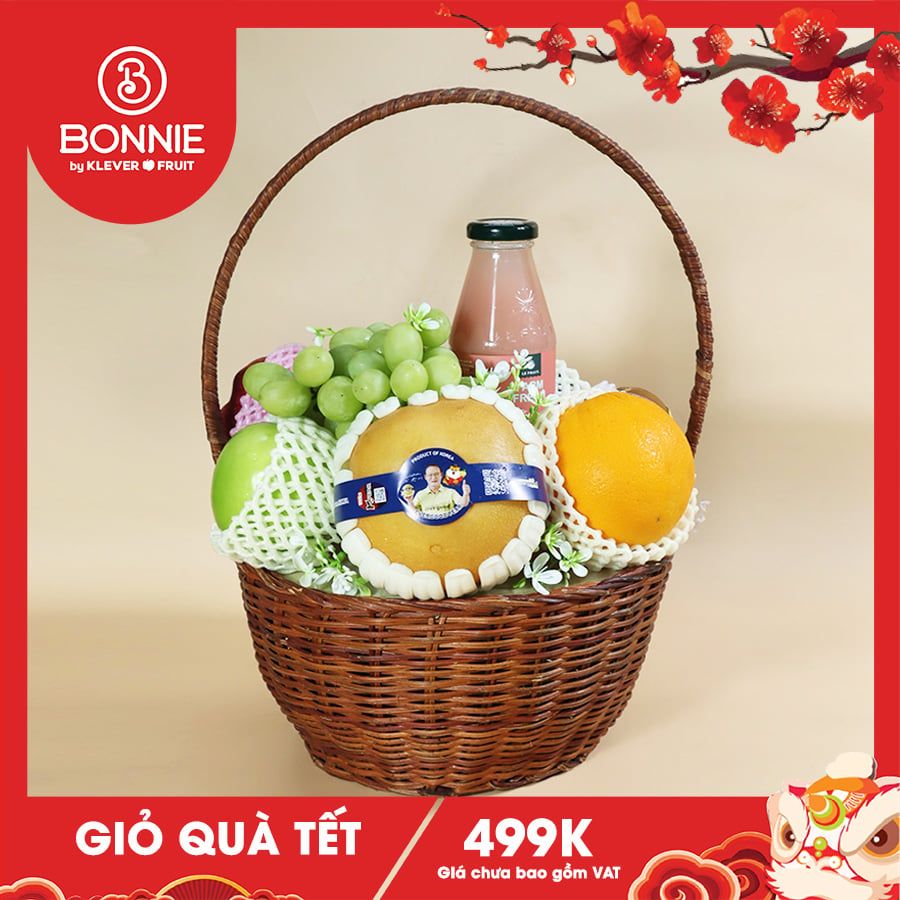 Với ngân sách vừa phải nhưng vẫn cần sự chỉn chu, Giỏ Quà Tết 499K tại Bonnie Fruit là lựa chọn lý tưởng cho những ai đang tìm một giỏ quà đẹp, lành mạnh và ý nghĩa để biếu Tết. Thiết kế giỏ tròn có đế vững chắc, phối hợp trái cây nhập khẩu cao cấp cùng nước ép thủ công Le Fruit, phù hợp nhiều đối tượng người nhận.