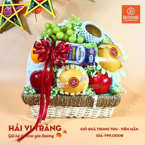 Nguyệt Viên – Vầng trăng tròn vẹn tượng trưng cho sự đoàn viên, sum vầy. Giỏ quà như một mâm hoa quả Trung Thu được sắp đặt chỉn chu, mang đến cảm giác đủ đầy, sung túc.